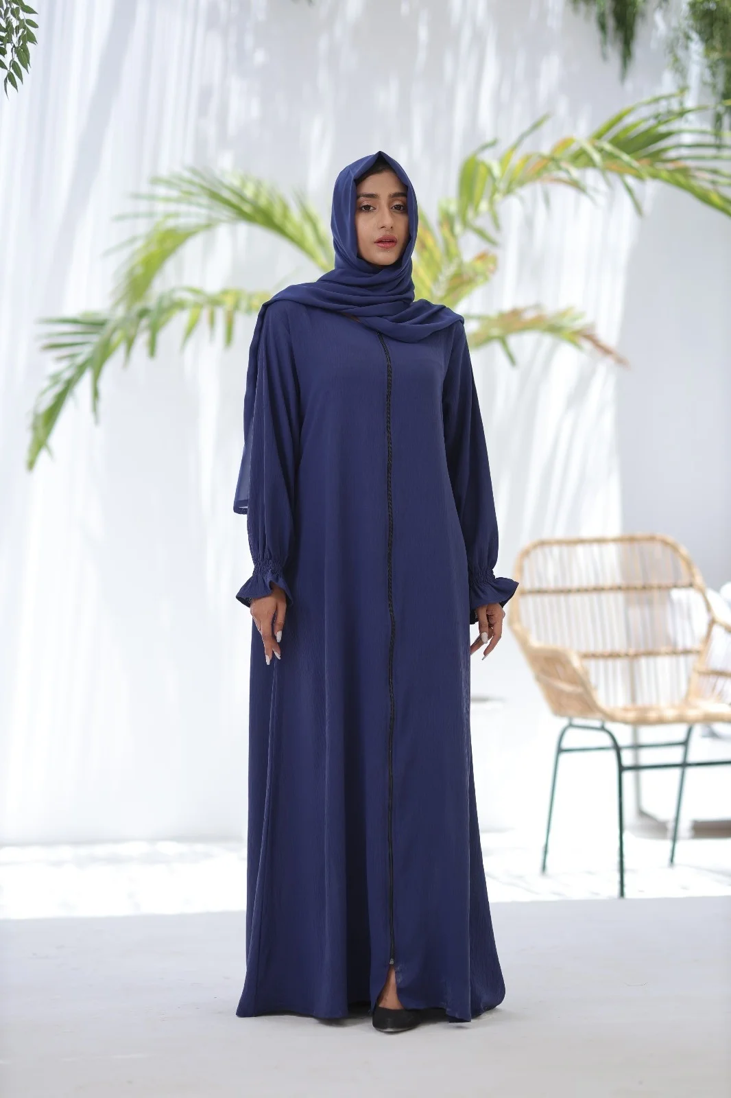 Introducing our newest abaya crafted from premium CEY fabric, designed to offer both elegance and functionality. This stylish abaya features a convenient front zip for easy wear, complemented by practical pockets to keep your essentials close at hand. The fancy stitch detailing on the sleeves adds a touch of sophistication, making this abaya perfect for any occasion. Embrace a blend of comfort, style, and practicality with our latest abaya collection.
