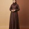 Lilac Aafrozah Abaya–This Abaya of light color looks very elegant & stylish. Delicate embroidery on sleeves make its complete match, thread work on sleeves . Matching Hijab Included.