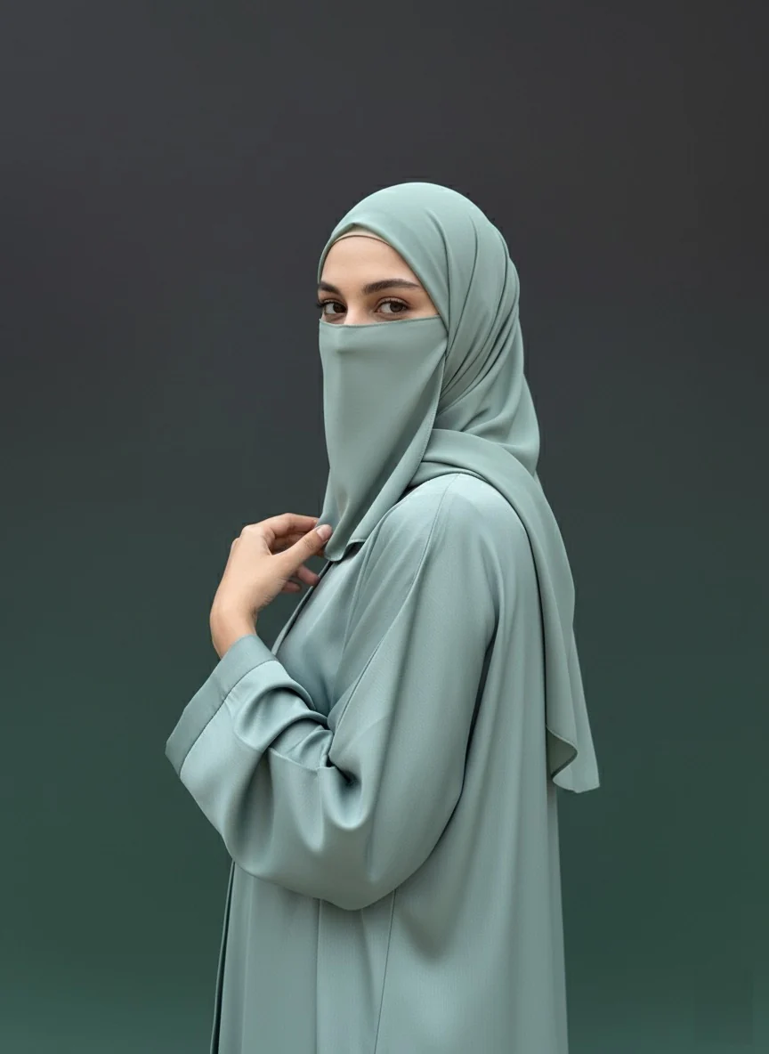 Sage Abaya With Naqab & Scarf